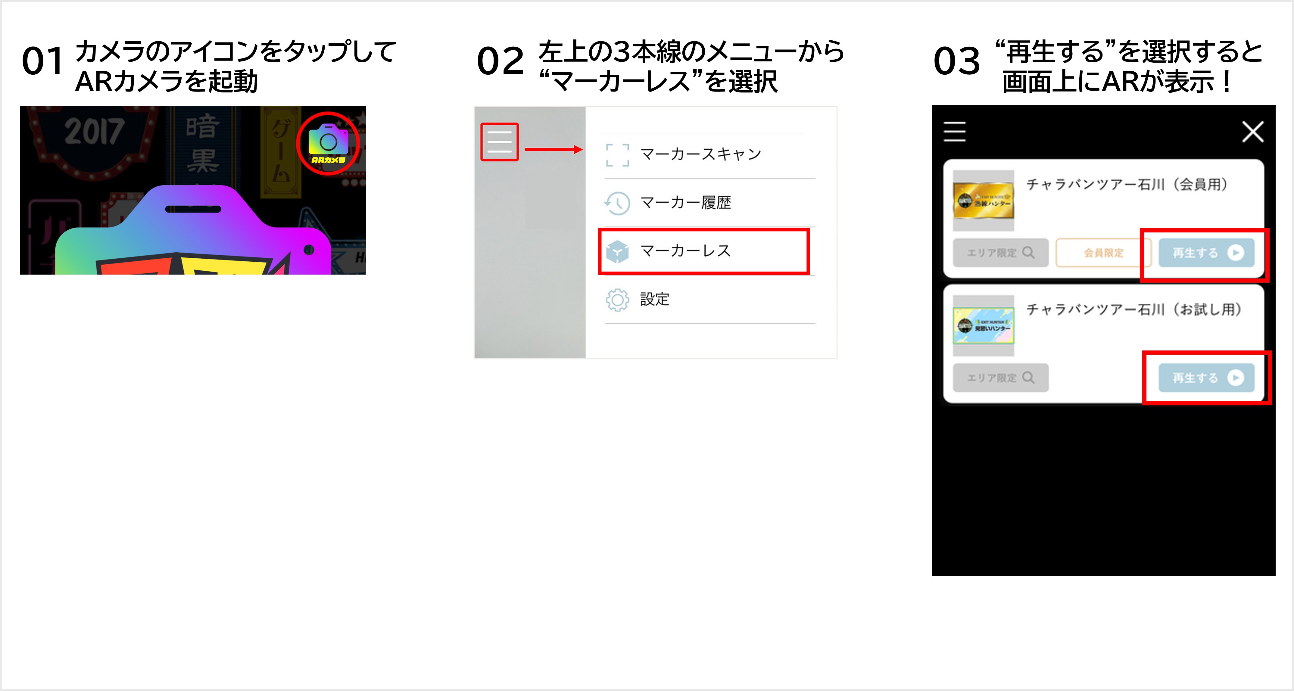③「再生する」をタップするとARカメラにスペシャル画像が出現!