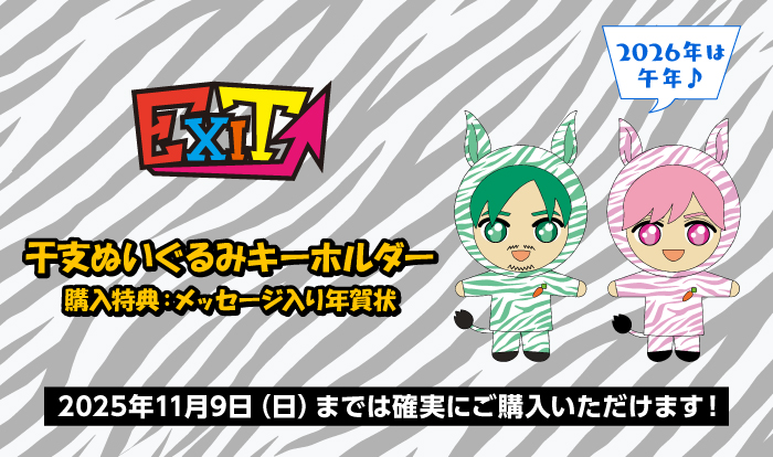EXITのふたりが干支の被り物をつけた、かわいいぬいぐるみキーホルダーが再び登場!
