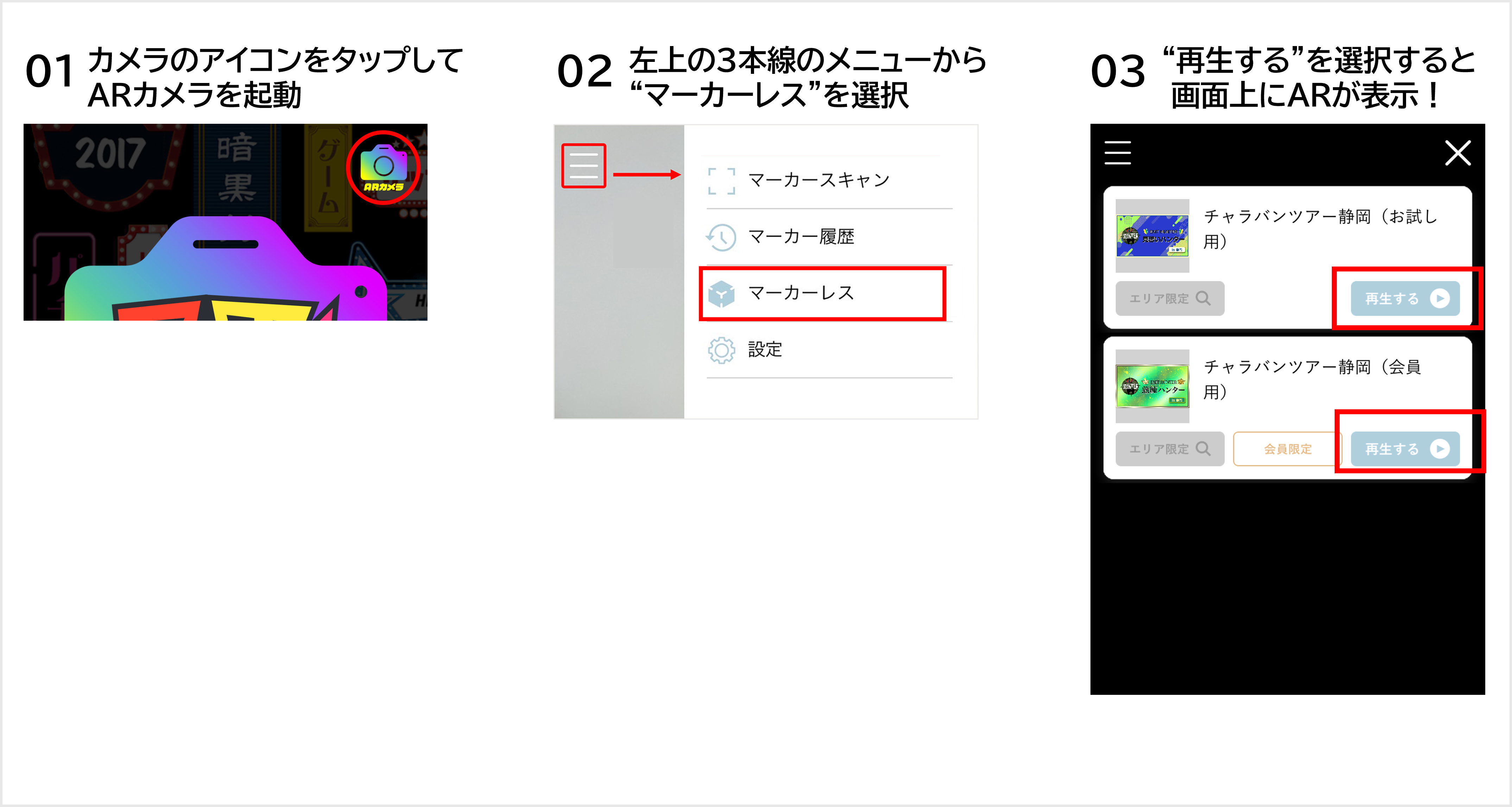 ③「再生する」をタップするとARカメラにスペシャル画像が出現!